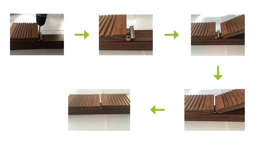 Najpierw wkręć łącznik w bok podłogi przed rowkiem i dokręć, a następnie za pomocą śrub przymocuj stępkę do stępki, po zainstalowaniu bocznej szczeliny w podłodze wyrównanej z przodem za pomocą siły łącznika Włóż i zamknij, ostatnią podłogę tylnej strony należy przymocować bezpośrednio do stępki za pomocą śrub.